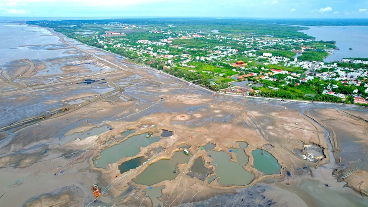 (Công trường dự án khu đô thị lấn biển Cần Giờ (xã Cần Giờ, TP.HCM) sau gần nửa năm thi công - Ảnh: Trí Đức)