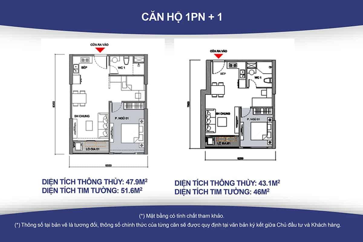 Không gian căn hộ được bố trí hợp lý với phòng khách, bếp, phòng ngủ và khu vệ sinh riêng biệt, tạo nên trải nghiệm sống tiện nghi dù diện tích không quá lớn. Đặc biệt, dòng căn hộ 1PN+1 mang đến sự linh hoạt khi bổ sung thêm một không gian đa năng, có thể sử dụng làm phòng làm việc, phòng ngủ nhỏ hoặc khu lưu trữ tùy nhu cầu.