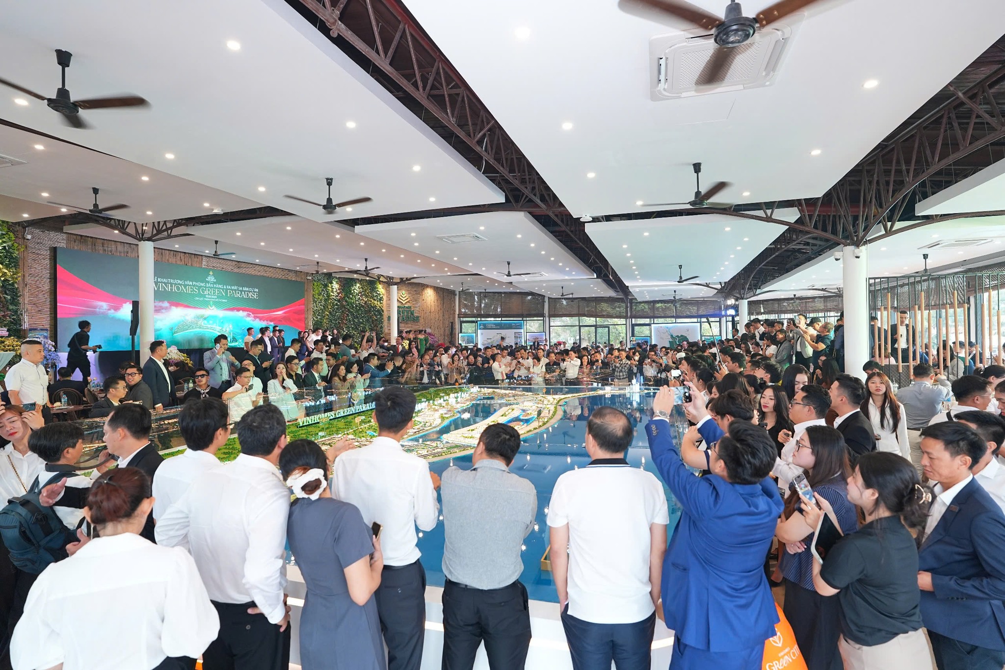 Sáng nay (30/10/2025), sự kiện ra mắt Sa bàn & Văn phòng Bán hàng Vinhomes Green Paradise đã diễn ra trong không khí sôi động và đầy hứng khởi. Ngay từ sớm, hàng trăm khách hàng, đối tác và chuyên viên kinh doanh đã có mặt để chiêm ngưỡng mô hình sa bàn của siêu đô thị lấn biển lớn nhất Việt Nam.