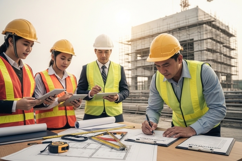 Trong giai đoạn này, các bên liên quan sẽ tiến hành kiểm tra xem công trình có thi công đúng theo bản vẽ thiết kế, tuân thủ tiêu chuẩn kỹ thuật, và các quy định xây dựng hiện hành hay không.