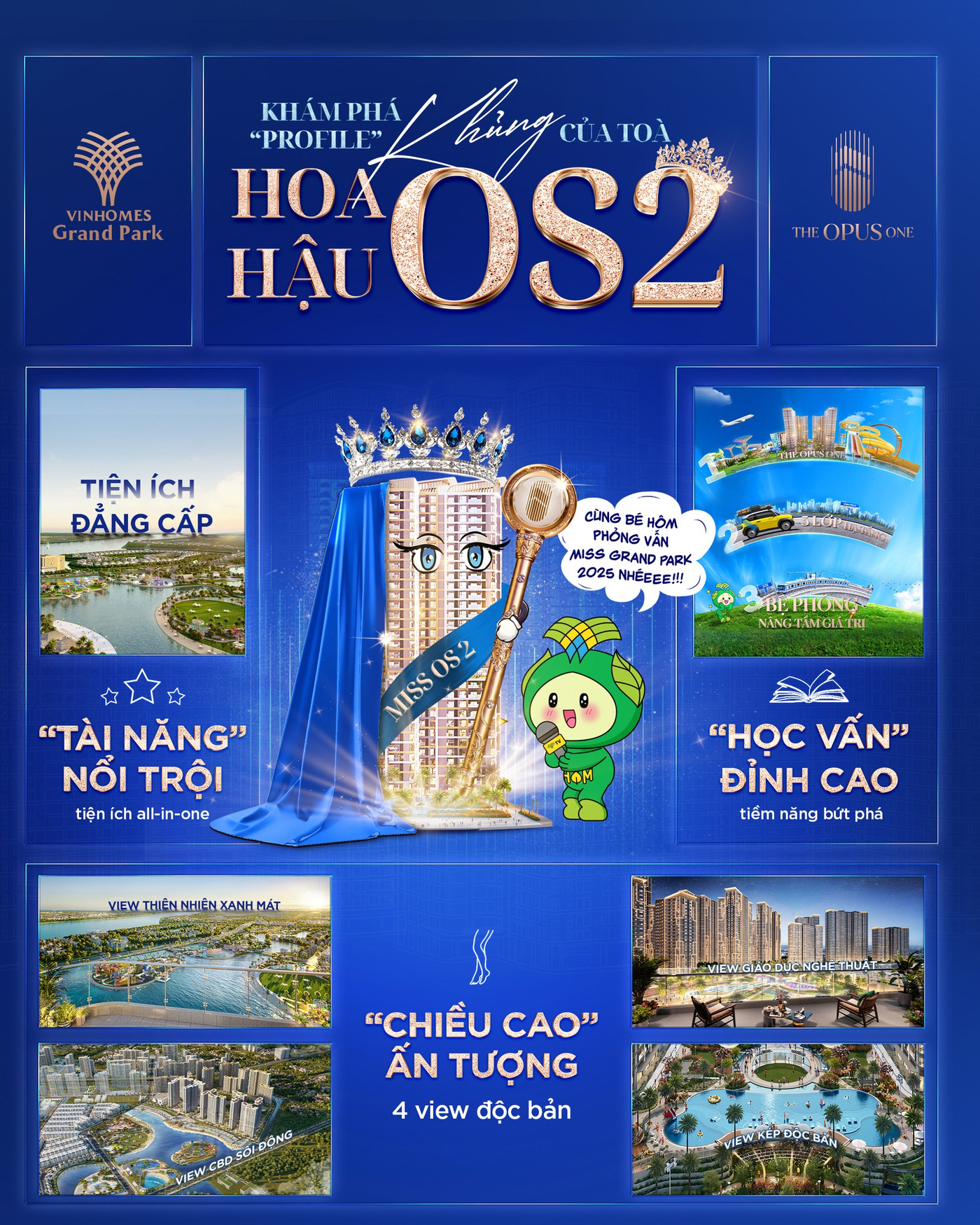 Trong bức tranh tổng thể của Vinhomes Grand Park, OS2 thuộc phân khu The Opus One được xem là tòa tháp sở hữu vị thế nổi bật nhất nhờ khả năng kết nối trực tiếp đến các trục tiện ích quan trọng. Không chỉ đơn thuần là một tòa căn hộ, OS2 còn đóng vai trò như “lõi trung tâm” khi nằm gần các biểu tượng tiện ích lớn, từ đó giúp gia tăng giá trị khai thác và tính thanh khoản.