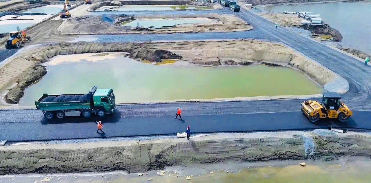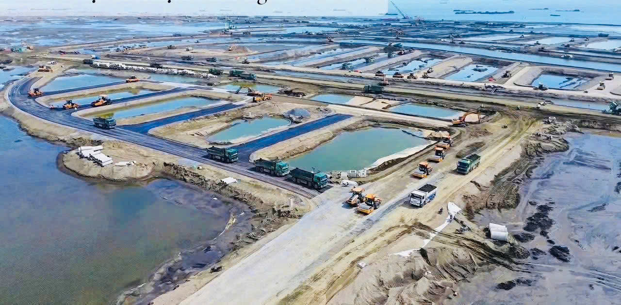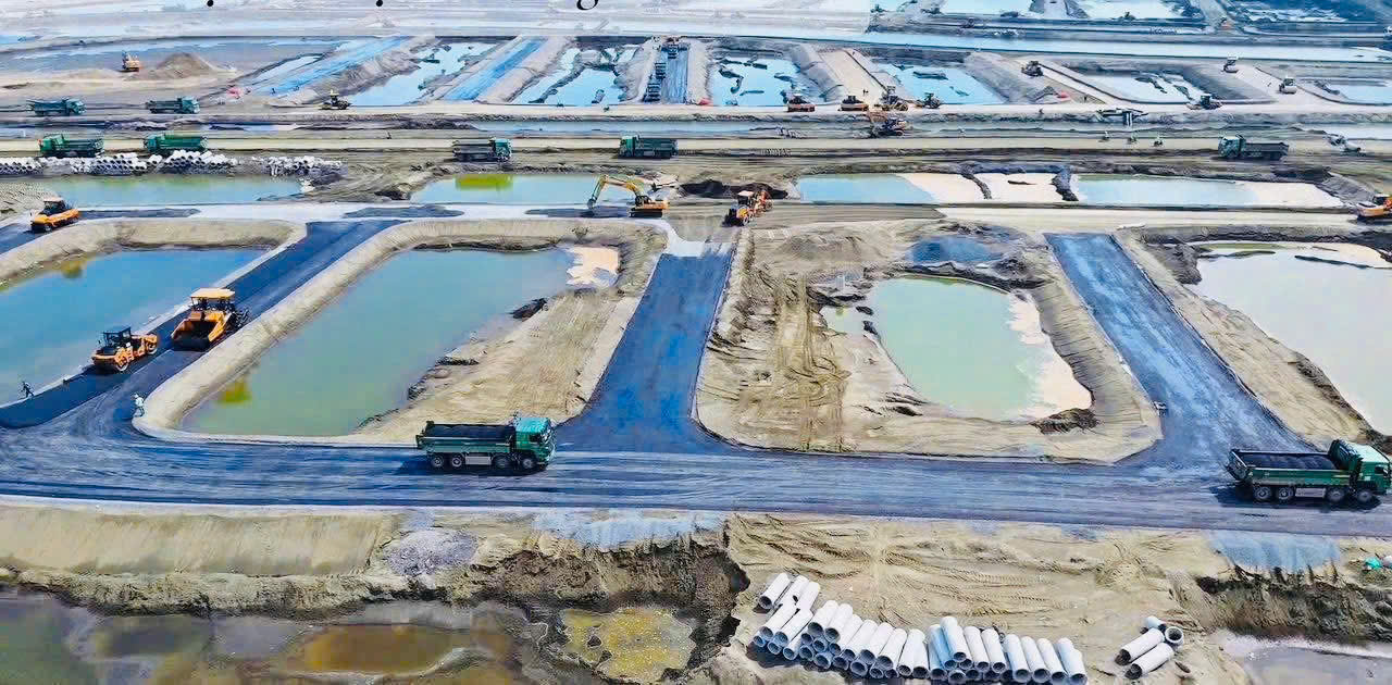 San lấp mặt bằng: Các công tác lấn biển, san lấp mặt bằng, xử lý nền móng đang được thực hiện song song với tiến độ cao.