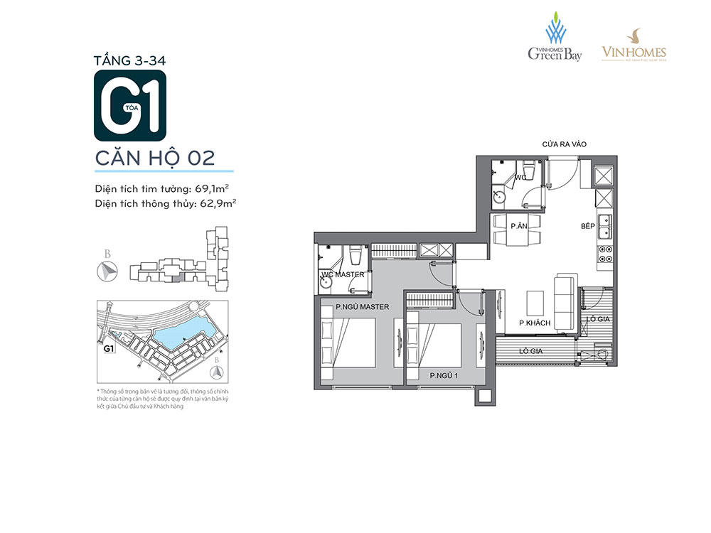 Căn hộ tòa G1 Vinhomes Green Bay với nhiều loại diện tích đa dạng. Trong đó: