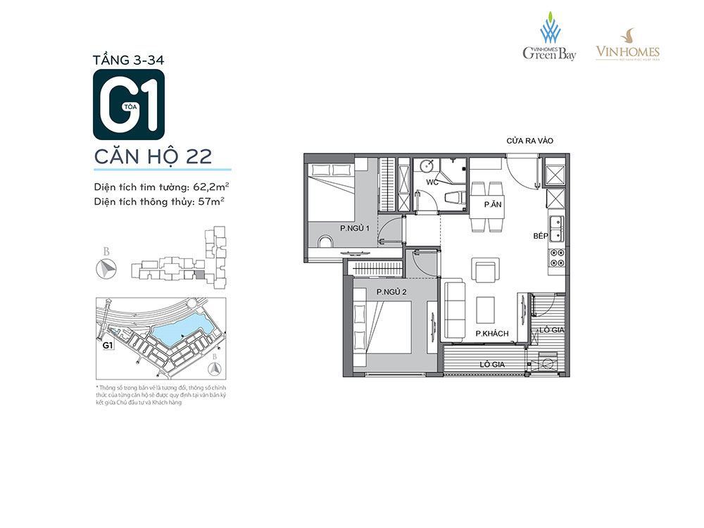 - Phía Đông Nam: Tiếp giáp 2 tòa tháp G2 & G3