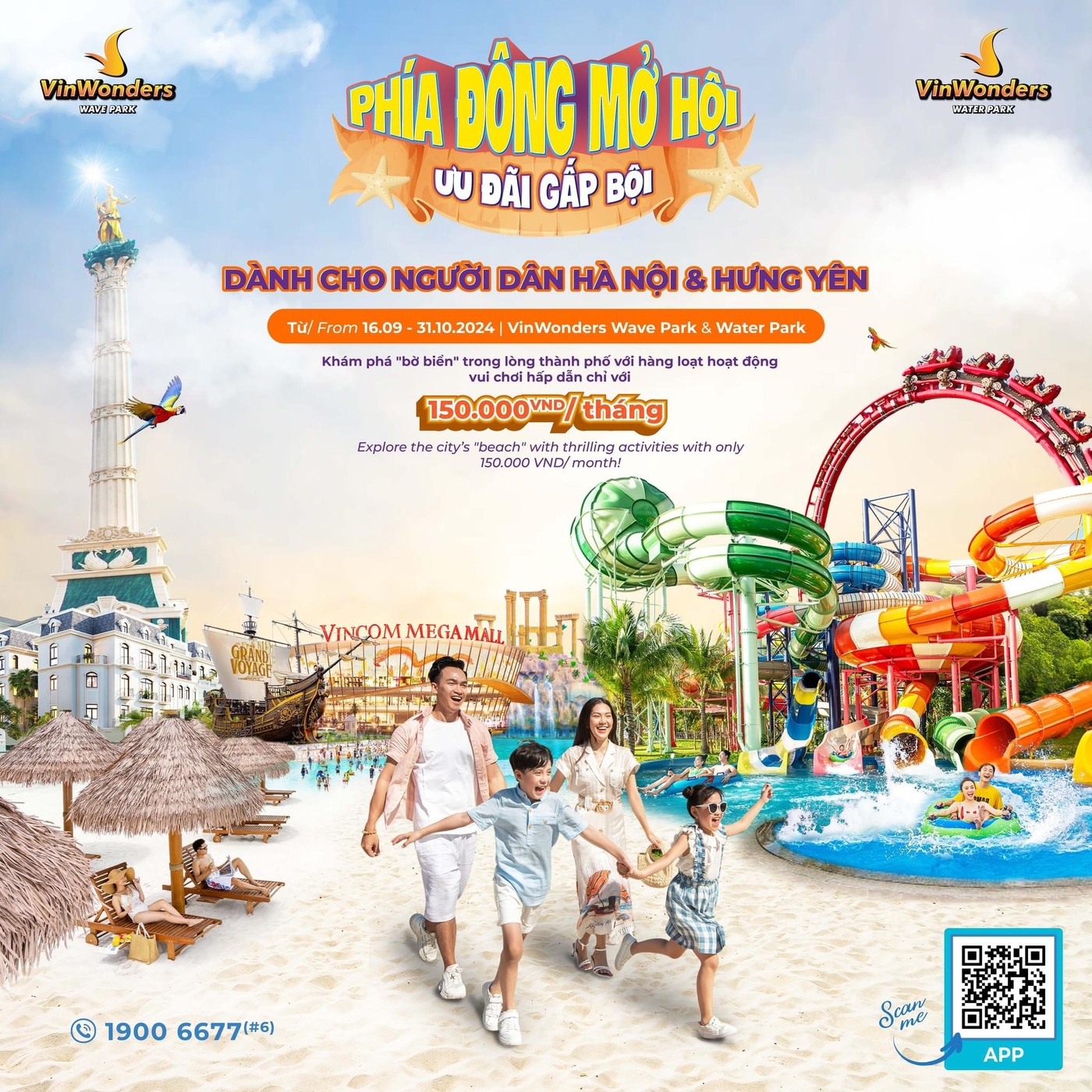 Một trong những điểm thu hút lớn của VinWonders Wave Park & Water Park là các chương trình ưu đãi dành riêng cho khách hàng khu vực Hà Nội và Hưng Yên. Với mức giá vé ưu đãi theo tháng, du khách có thể tiếp cận không gian giải trí cao cấp với chi phí hợp lý hơn so với thông thường.