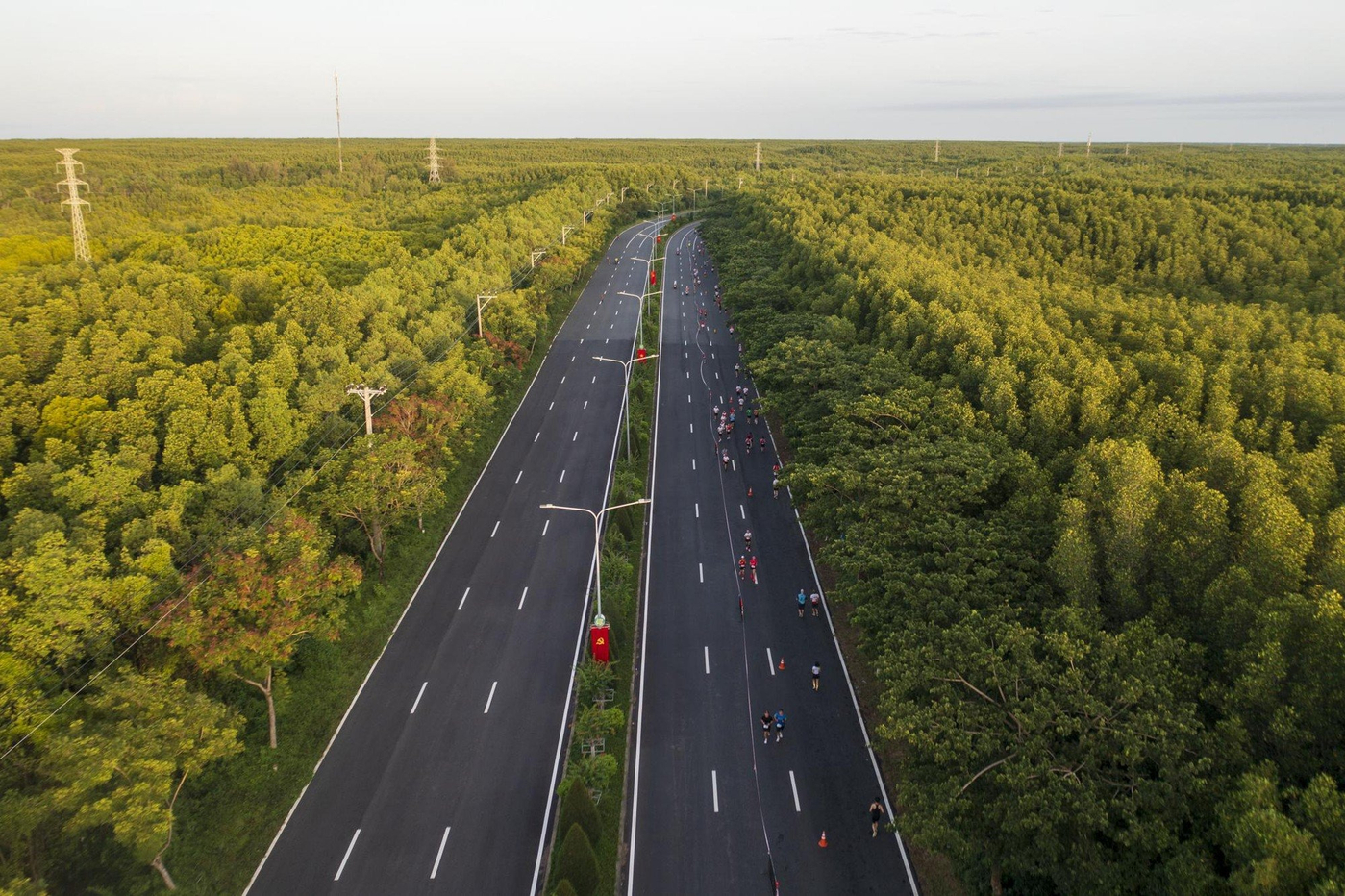 (Đường Rừng Sác dài 36,5km, gồm 6 làn xe chạy xuyên qua rừng sinh quyển Cần Giờ)