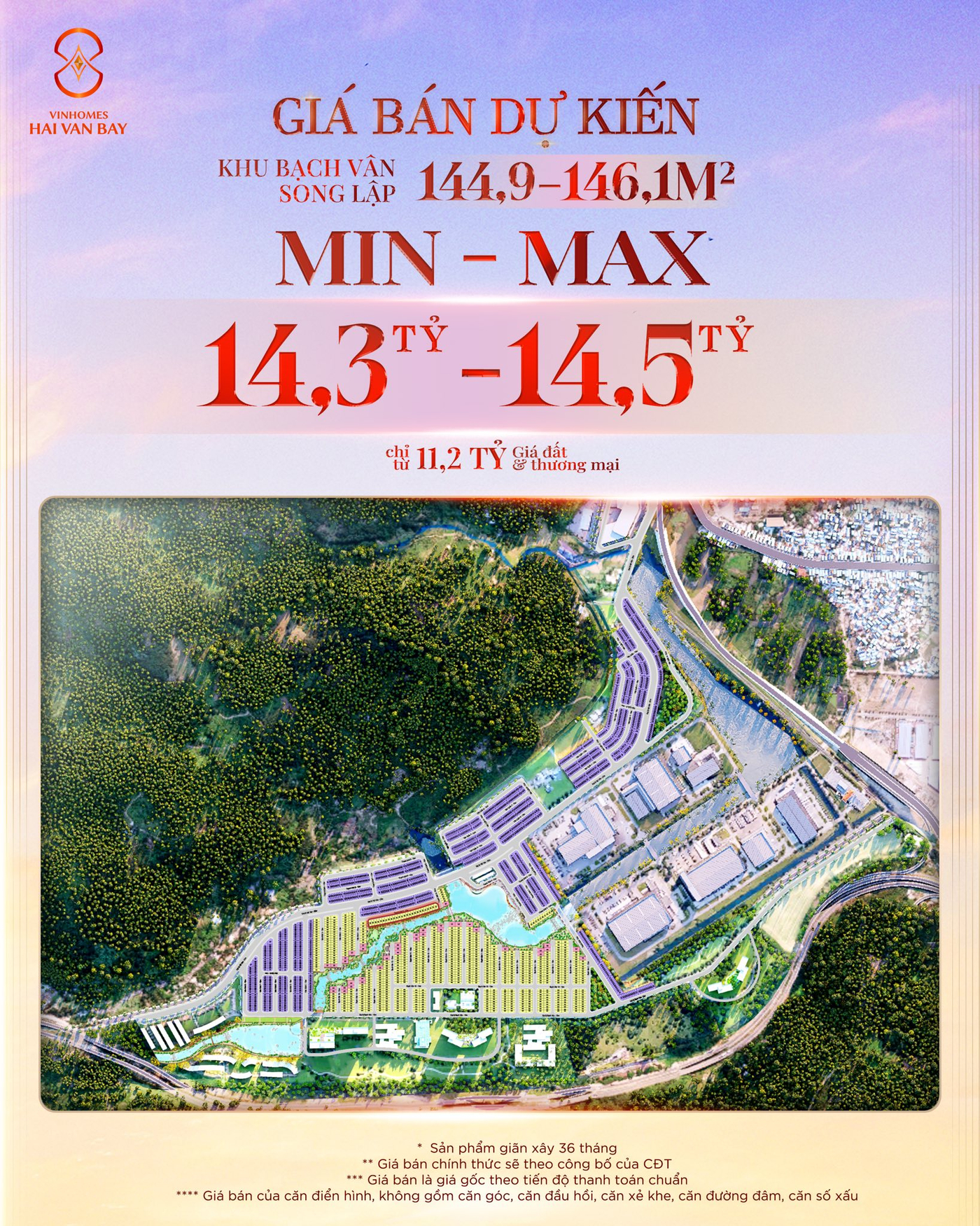Song lập 160m2 (13,7 - 16,8 tỷ): Sản phẩm đẳng cấp nhất tại khu Bạch Vân. Với diện tích lớn, gia chủ có thể tự thiết kế hồ bơi hoặc tiểu cảnh sân vườn riêng, khẳng định vị thế chủ nhân tại đại đô thị vịnh biển toàn cầu.
