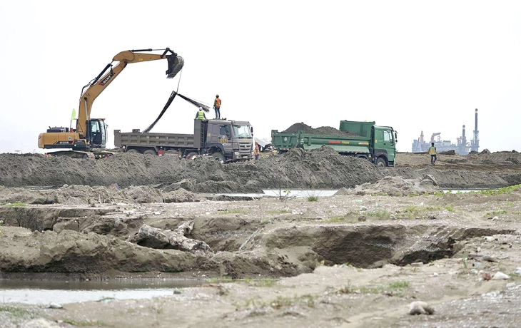 (Công trường dự án khu đô thị lấn biển Cần Giờ (xã Cần Giờ, TP.HCM) sau gần nửa năm thi công - Ảnh: Trí Đức)