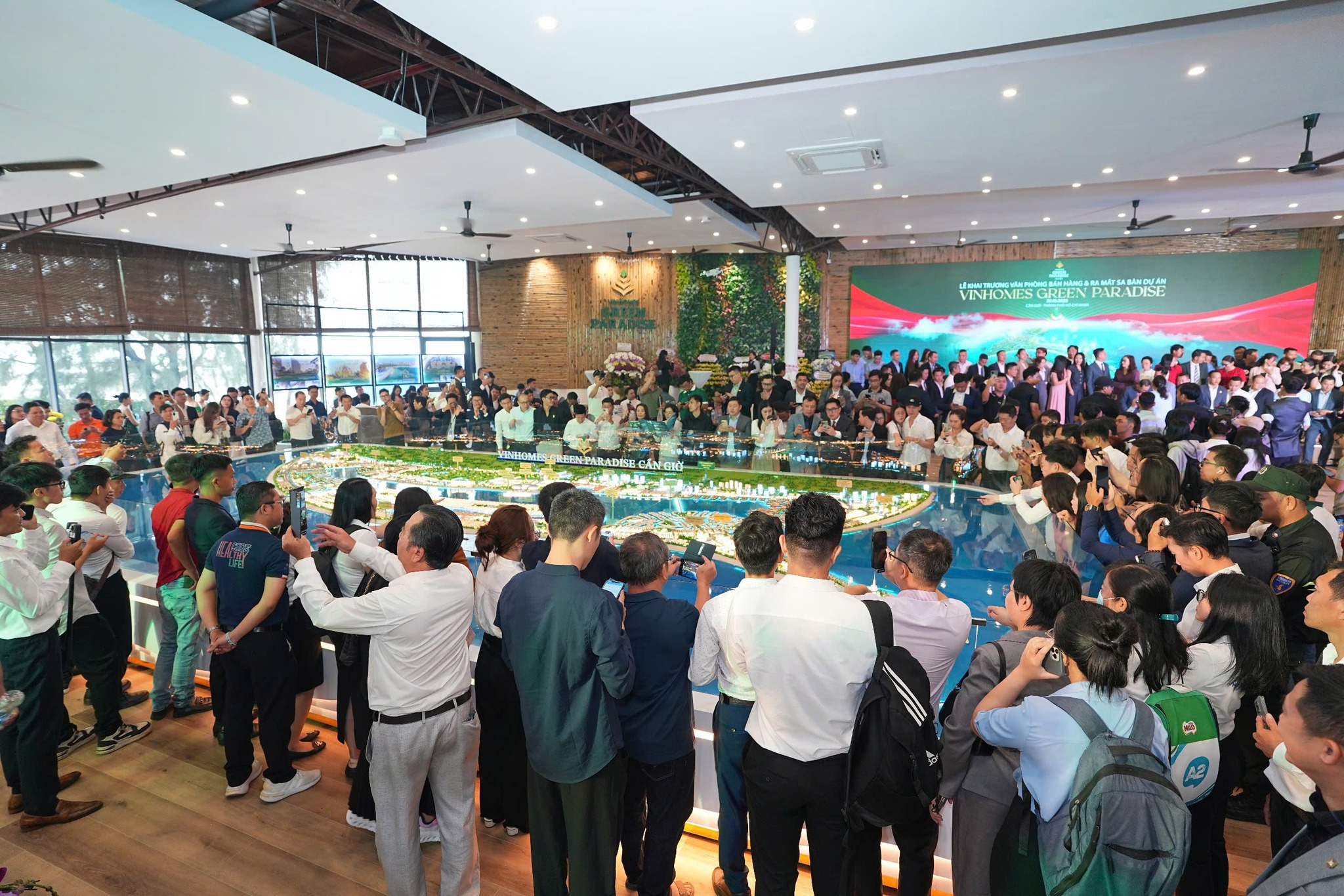 Sáng nay (30/10/2025), sự kiện ra mắt Sa bàn & Văn phòng Bán hàng Vinhomes Green Paradise đã diễn ra trong không khí sôi động và đầy hứng khởi. Ngay từ sớm, hàng trăm khách hàng, đối tác và chuyên viên kinh doanh đã có mặt để chiêm ngưỡng mô hình sa bàn của siêu đô thị lấn biển lớn nhất Việt Nam.