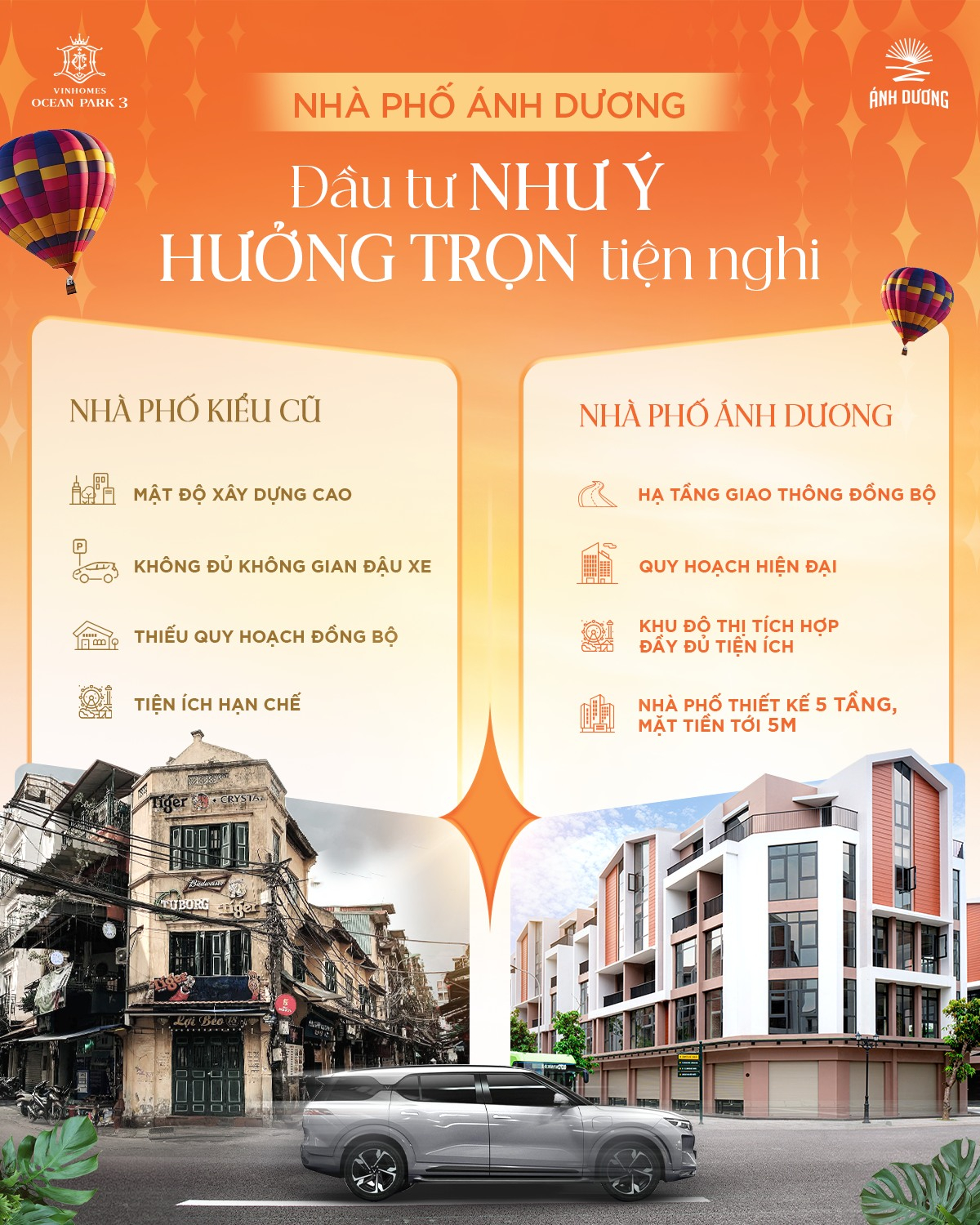 Nhà phố truyền thống đang dần bộc lộ nhiều hạn chế trước tốc độ đô thị hóa. Trong khi đó, nhà phố Ánh Dương tại Vinhomes Ocean Park 3 nổi lên như một chuẩn sống mới, đồng thời mở ra cơ hội đầu tư bền vững cho khách hàng.