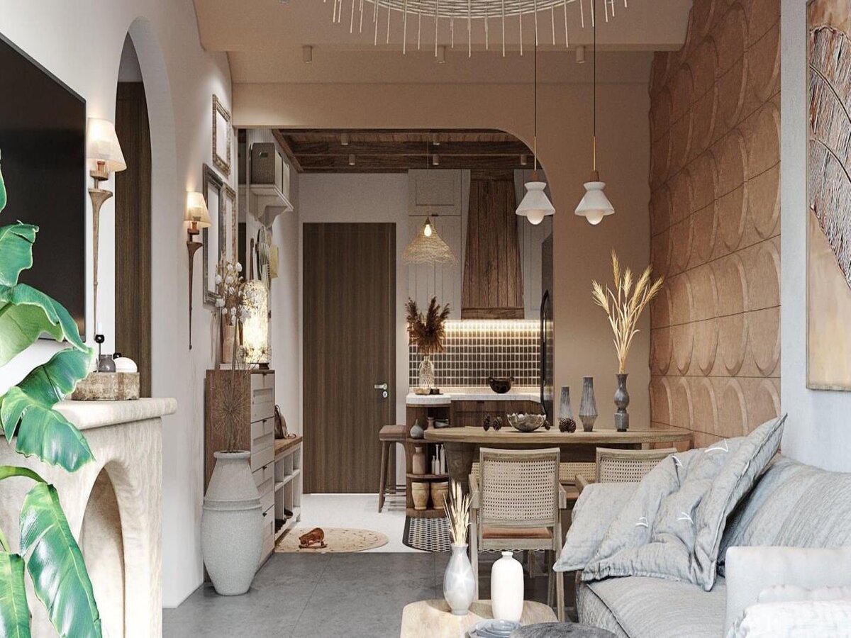 Rustic hiện đại thường sử dụng nội thất thông minh để tối ưu diện tích, đặc biệt phù hợp với căn hộ tại các đô thị lớn. Cách bố trí gọn gàng, khoa học giúp không gian trở nên linh hoạt hơn mà không làm mất đi bản sắc thiết kế.