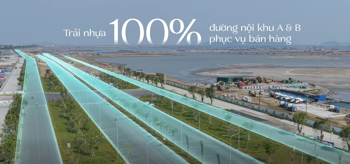Các hạng mục hạ tầng chính như hệ thống giao thông nội khu, cảnh quan công viên ven biển và một số khu nhà ở đã được triển khai hàng loạt, đảm bảo theo kế hoạch.