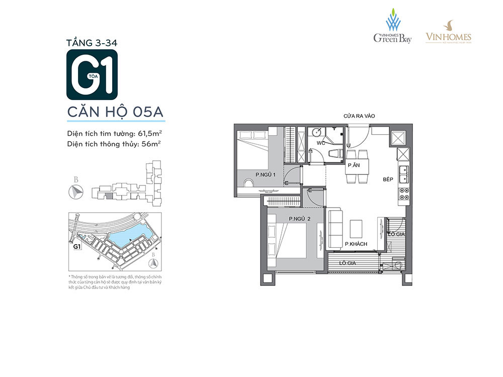 Căn hộ tòa G1 Vinhomes Green Bay với nhiều loại diện tích đa dạng. Trong đó: