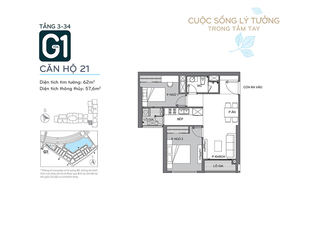 - Phía Đông Nam: Tiếp giáp 2 tòa tháp G2 & G3