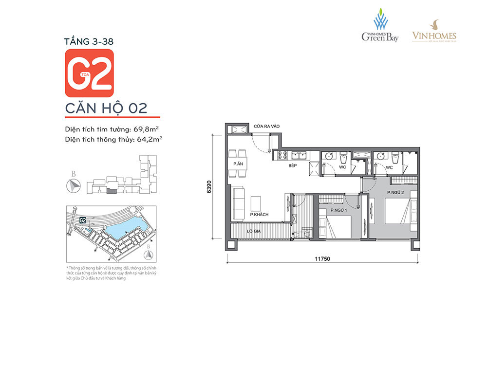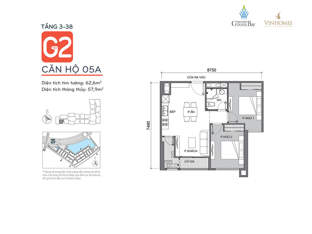 Tòa G2 thuộc dự án Vinhomes Green Bay nằm bên cạnh đại lộ Thăng Long & khu biệt thự Mộc Lan. Tòa G2 cao 38 tầng với 750 căn hộ nổi bật bởi tầm nhìn bao quát toàn cảnh hồ điều hòa & trung tâm hội nghị quốc gia 2 trong 1.