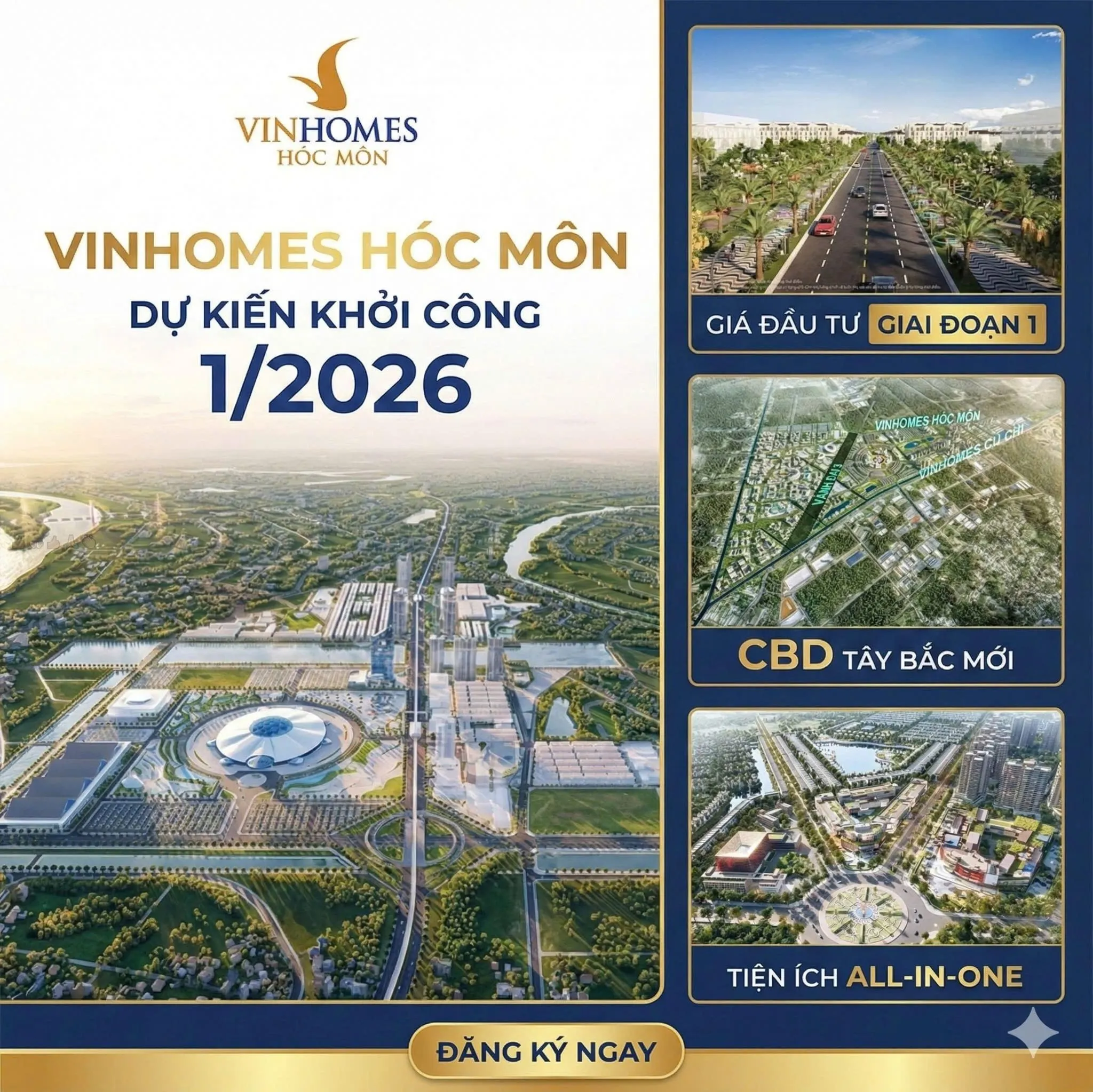 Trong giai đoạn 1, Chủ đầu tư sẽ triển khai khoảng 55 ha thuộc khu vực phía Nam của dự án. Đây sẽ là “bước chân đầu tiên” kiến tạo nên diện mạo đô thị hiện đại cho Vinhomes Hóc Môn, với các sản phẩm bất động sản cao cấp dự kiến bao gồm: