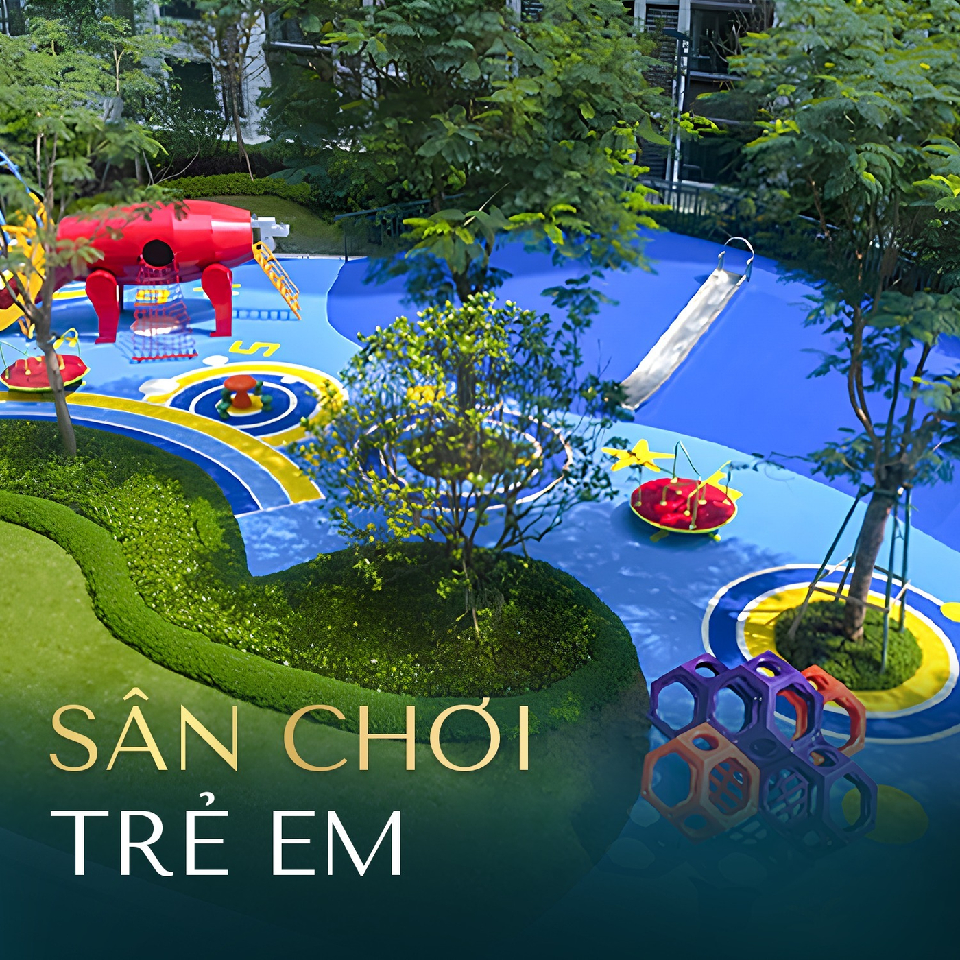Dành riêng cho những cư dân nhí, sân chơi trẻ em được thiết kế ưu tiên sự an toàn và tính sáng tạo. Đây là môi trường hoàn hảo để con trẻ phát triển thể chất tự nhiên, rời xa màn hình điện tử để kết nối với bạn bè và thiên nhiên, xây dựng những ký ức tuổi thơ tươi đẹp trong một cộng đồng gia đình gắn kết.