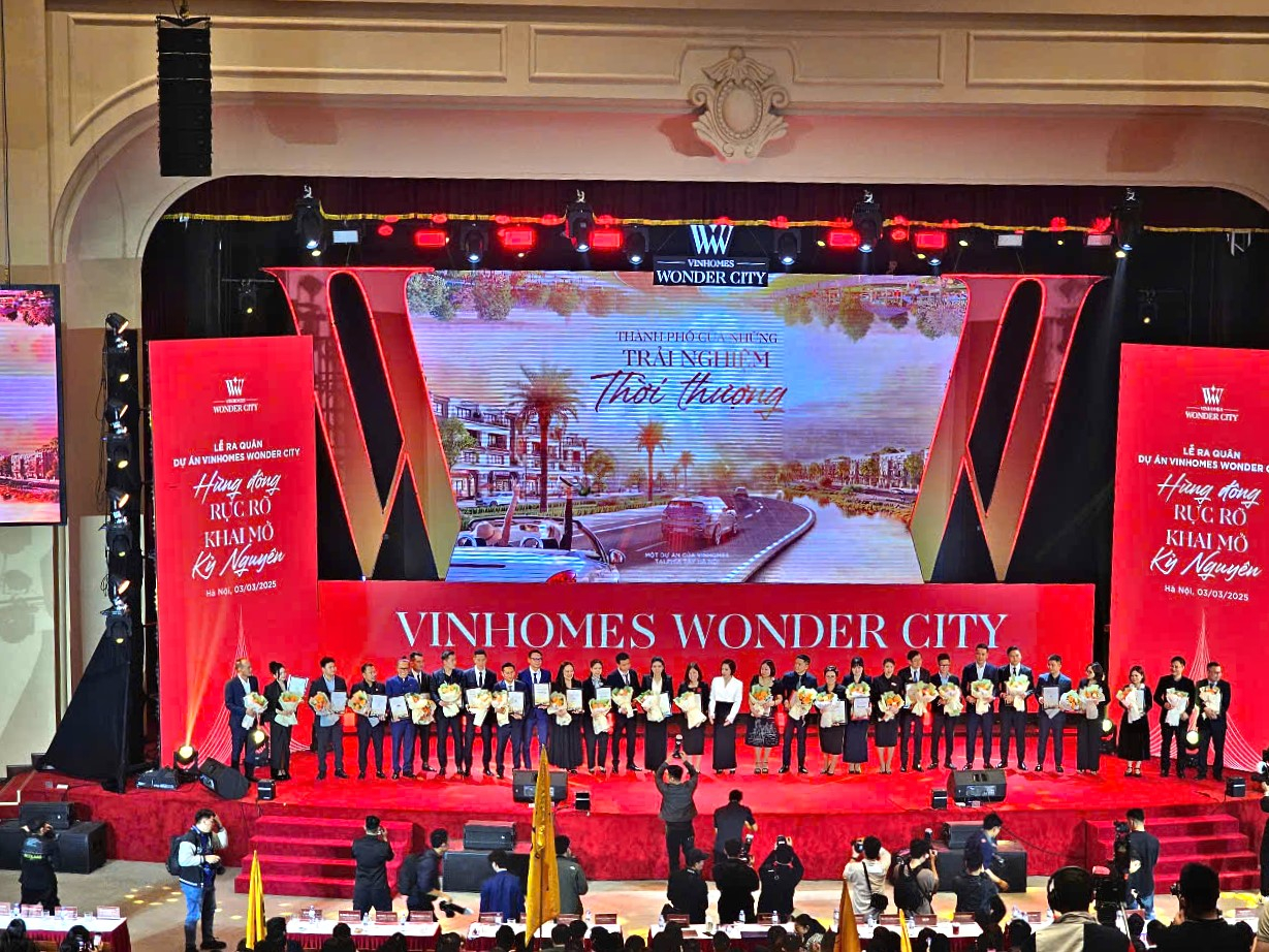 Lễ ra quân Vinhomes Wonder City diễn ra trong không khí sôi động với sự tham gia của hàng nghìn chuyên viên kinh doanh cùng các đại lý phân phối chiến lược. Không khí “bùng nổ” tại hội trường cho thấy sức nóng của dự án ngay từ thời điểm công bố, phản ánh rõ kỳ vọng lớn từ thị trường.